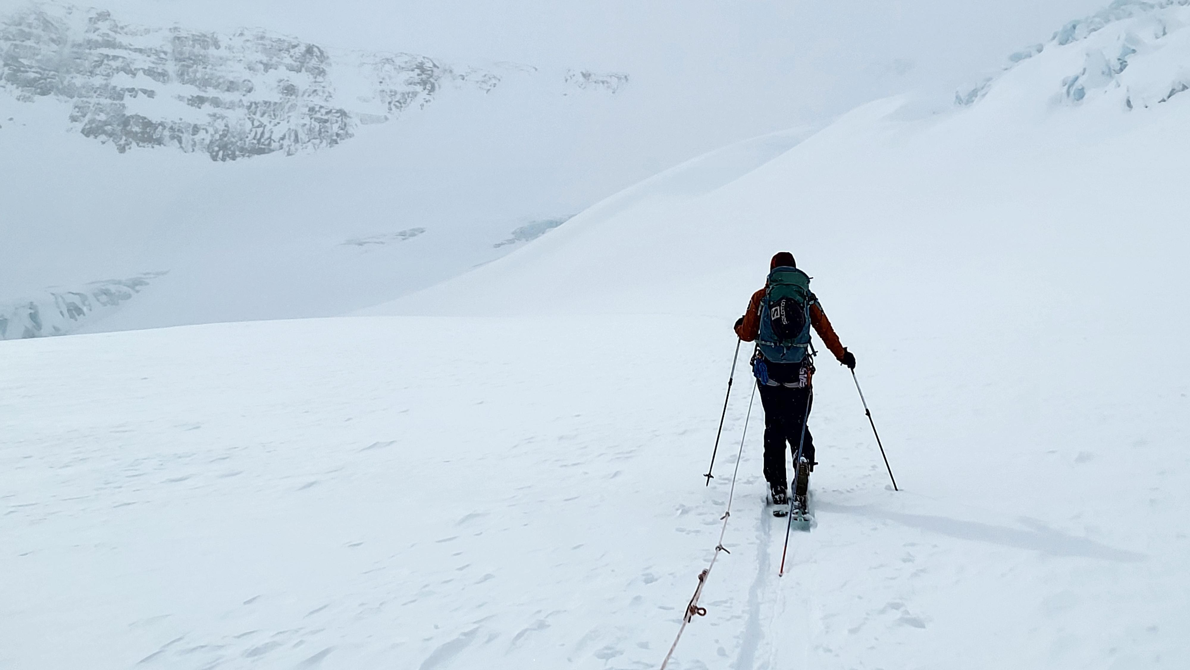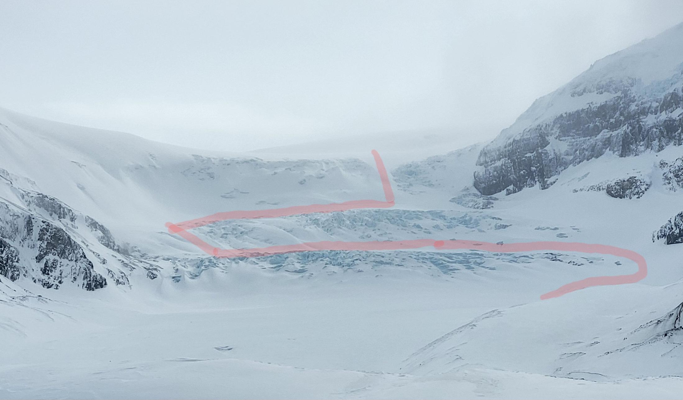 With the above-average snowfall this season, the Athabasca Ramp is in better condition than has been observed in recent years. Probed snow depths along the ascent route were predominantly greater than 3 meters, with 1.5 meters measured in a thinner area at the top of the second icefall.